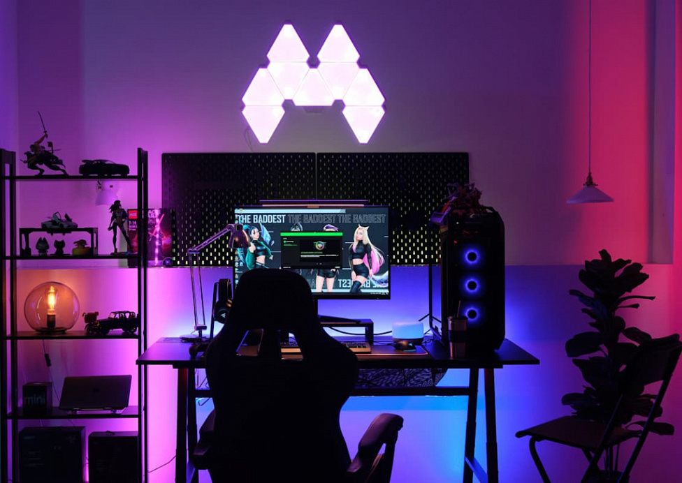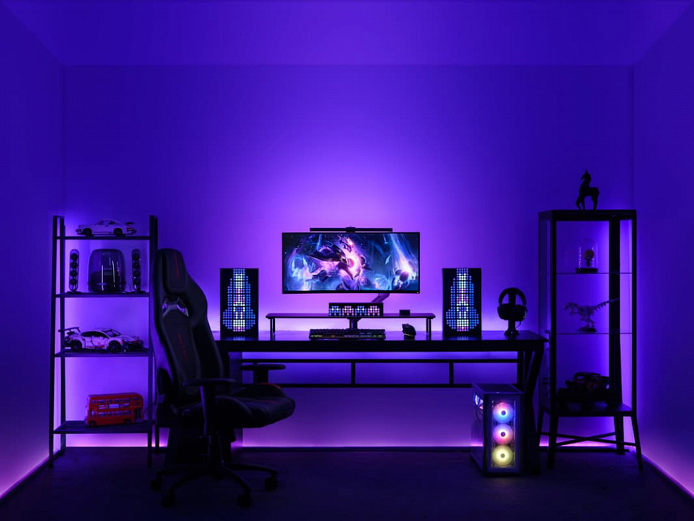 Игровая мебель одновременно удобная и стильная: один её вид уже создаёт игровую атмосферу. А если заморочиться с умным светом (хотя там нечего морочиться — лампочки, светодиодные ленты и подобные устройства легко установить и использовать), то будет вообще атас. Давайте узнаем, что нужно для идеальной геймерской комнаты и какие модели мебели и освещения отлично подойдут.