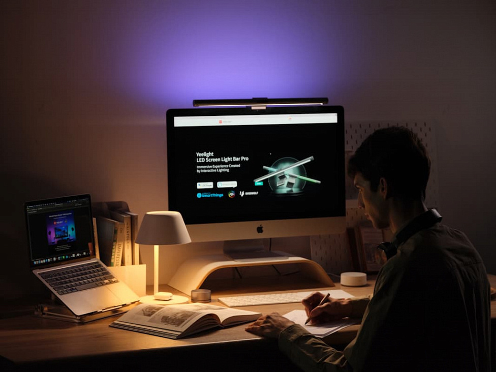 Yeelight LED Monitor Light Bar Rechargeable обеспечивает равномерное освещение без бликов. Мягкий направленный свет не слепит и не отражается в экране: глаза будут меньше уставать, а головные боли, вызванные перенапряжением, уйдут. Можно выбрать из трёх режимов освещения разной цветовой температуры и плавно регулировать яркость. Панель работает автономно: до 150 минут на полной зарядке. Лампу можно брать с собой, переставлять на другой монитор и использовать для чтения. Управление сенсорное. При выключении или пропадании питания светильник восстановит прежнее освещение при повторном включении.