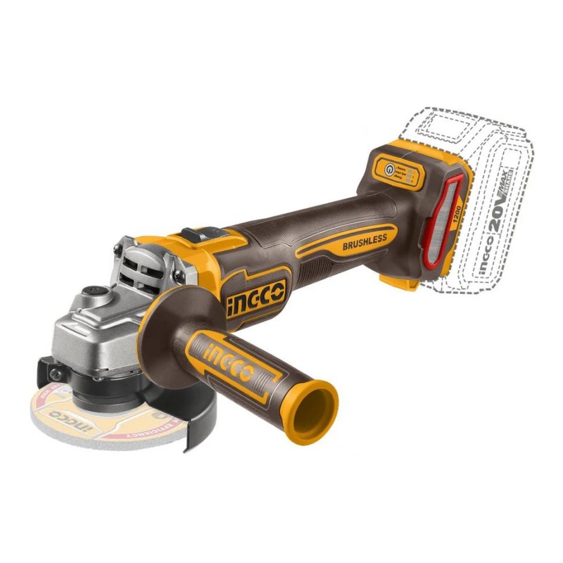 Аккумуляторная угловая шлифовальная машина INGCO CAGLI221253 — современный инструмент, который объединяет в себе мобильность, мощность и удобство использования.