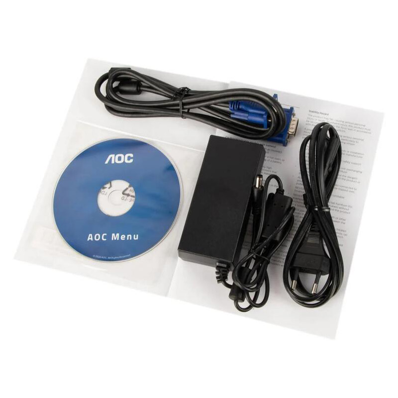 монитор, блок питания, документация, кабель VGA (D-Sub) - VGA, кабель питания