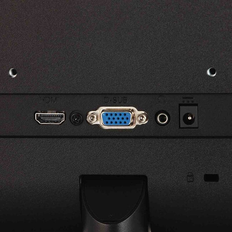 Разъёмы HDMI, VGA и выход на наушники обеспечивают совместимость с широким спектром устройств. Монитор можно закрепить на стену благодаря поддержке VESA 100×100.
