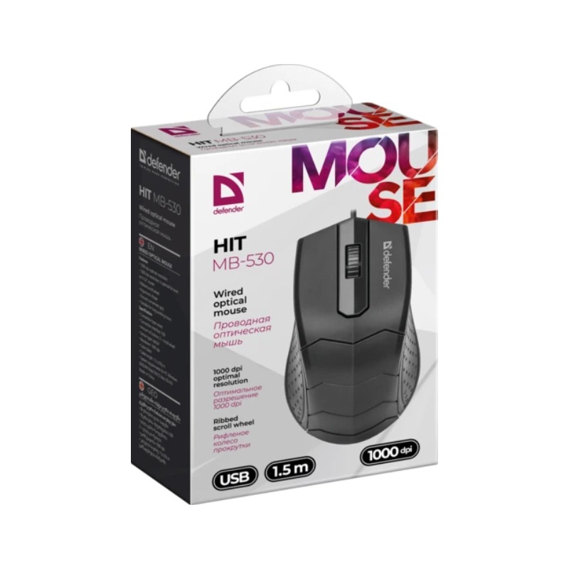 Мышь проводная Defender Hit MB-530 — оптимальное решение для тех, кто ищет простую, надёжную и удобную мышь для повседневной работы.
