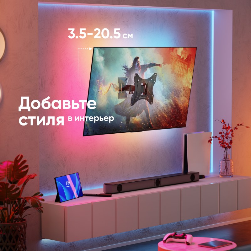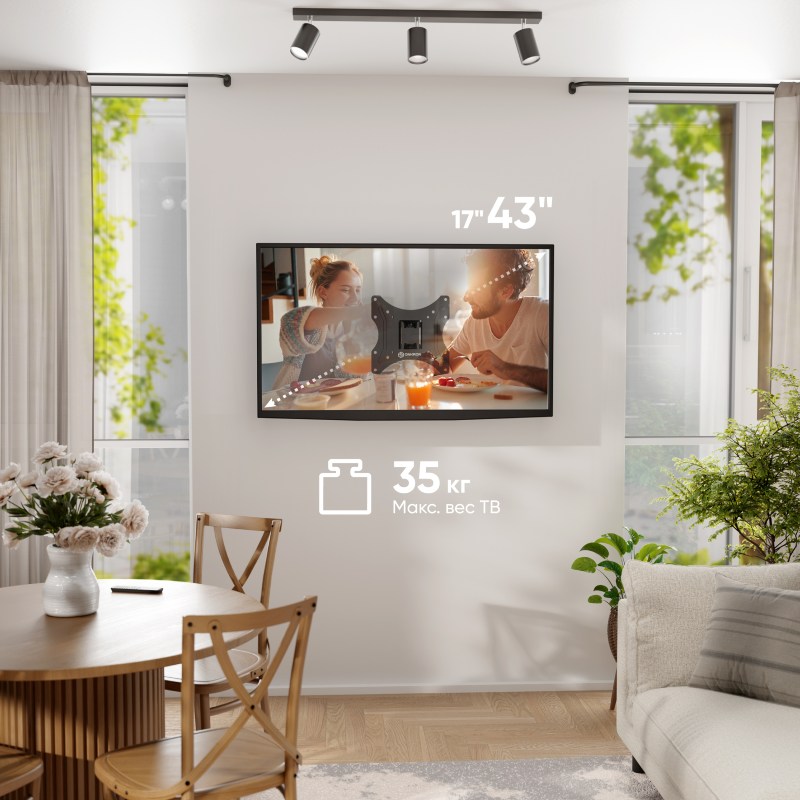 Лёгкий монтаж и продуманная конструкция ONKRON делают процесс установки быстрым и удобным. Расстояние от стены до телевизора регулируется в пределах 35-205 мм, что позволяет оптимально использовать пространство.