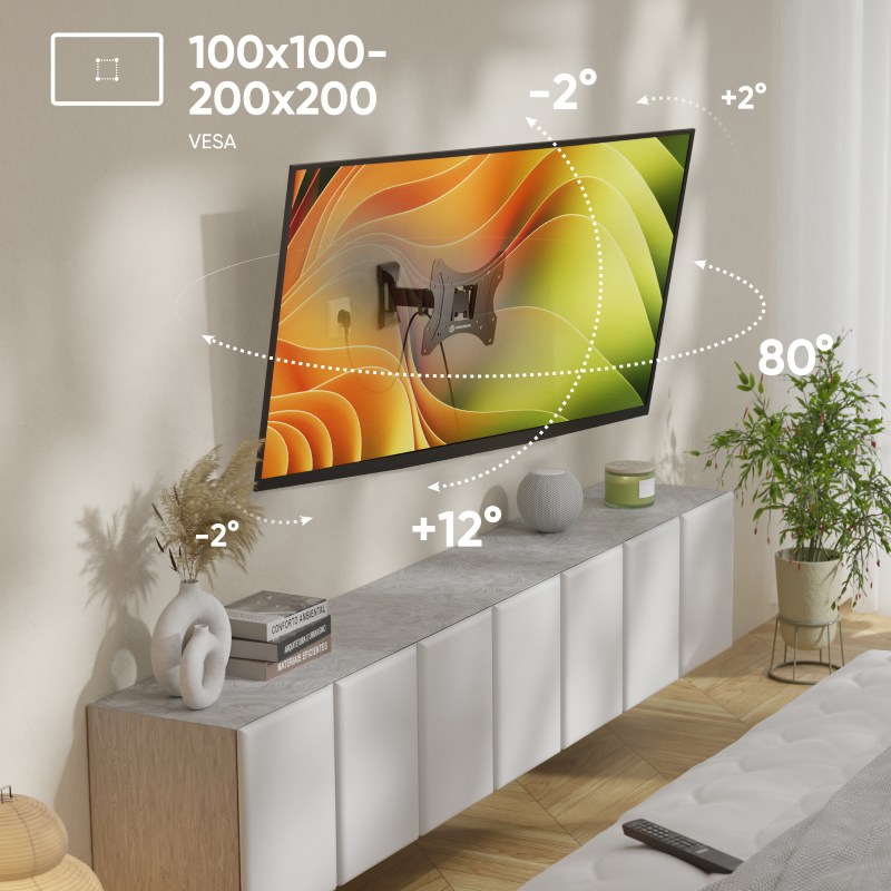 Регулировка наклона на 12° и поворота на 80° позволяет выбрать оптимальный угол обзора. Вы легко настроите положение экрана для комфортного просмотра из любой точки комнаты.