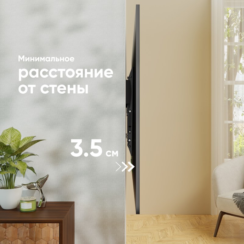 Чёрный матовый цвет делает кронштейн стильным элементом интерьера, а не просто функциональной деталью. При этом он остаётся практически незаметным, позволяя телевизору быть главным героем вашей гостиной.