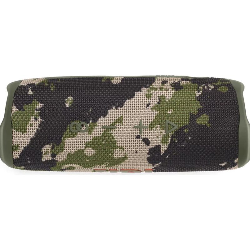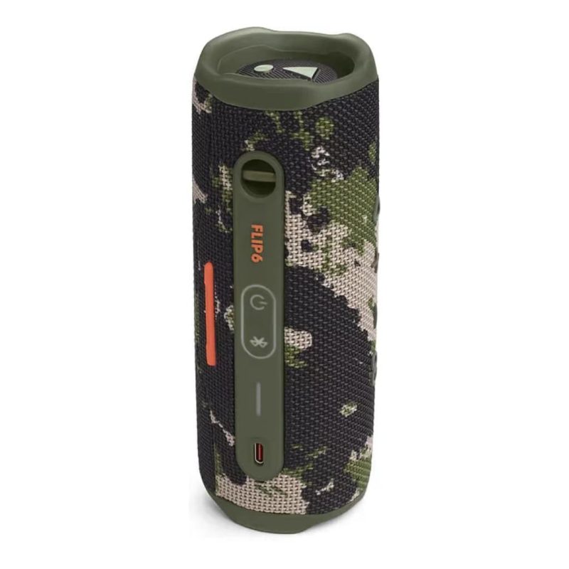 Корпус JBL Flip 6 выполнен из прочного пластика с тканевым водоотталкивающим покрытием. Модель цвета хаки отлично вписывается как в городской, так и в природный ландшафт. Колонка защищена по стандарту IP67, что допускает её использование в любых погодных условиях и во влажных помещениях.
