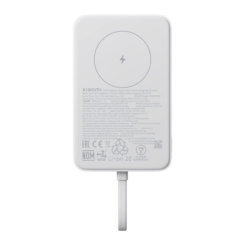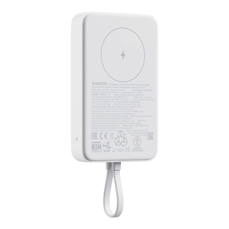 Внешний аккумулятор Xiaomi 33W Magnetic Power Bank (Integrated Cable) 10000mAh White — элегантное и технологичное решение для современного пользователя, объединяющее в себе стильный дизайн, мощную зарядку и удобство в использовании.